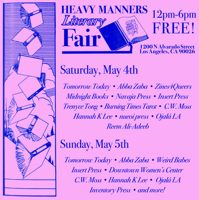 Insert Press at Heavy Manners Literary Fair Saturday May 4th and Sunday May 5th from 12pm to 6pm 1200 N Alvarado Blvd Unit D, Los Angeles, CA 90026