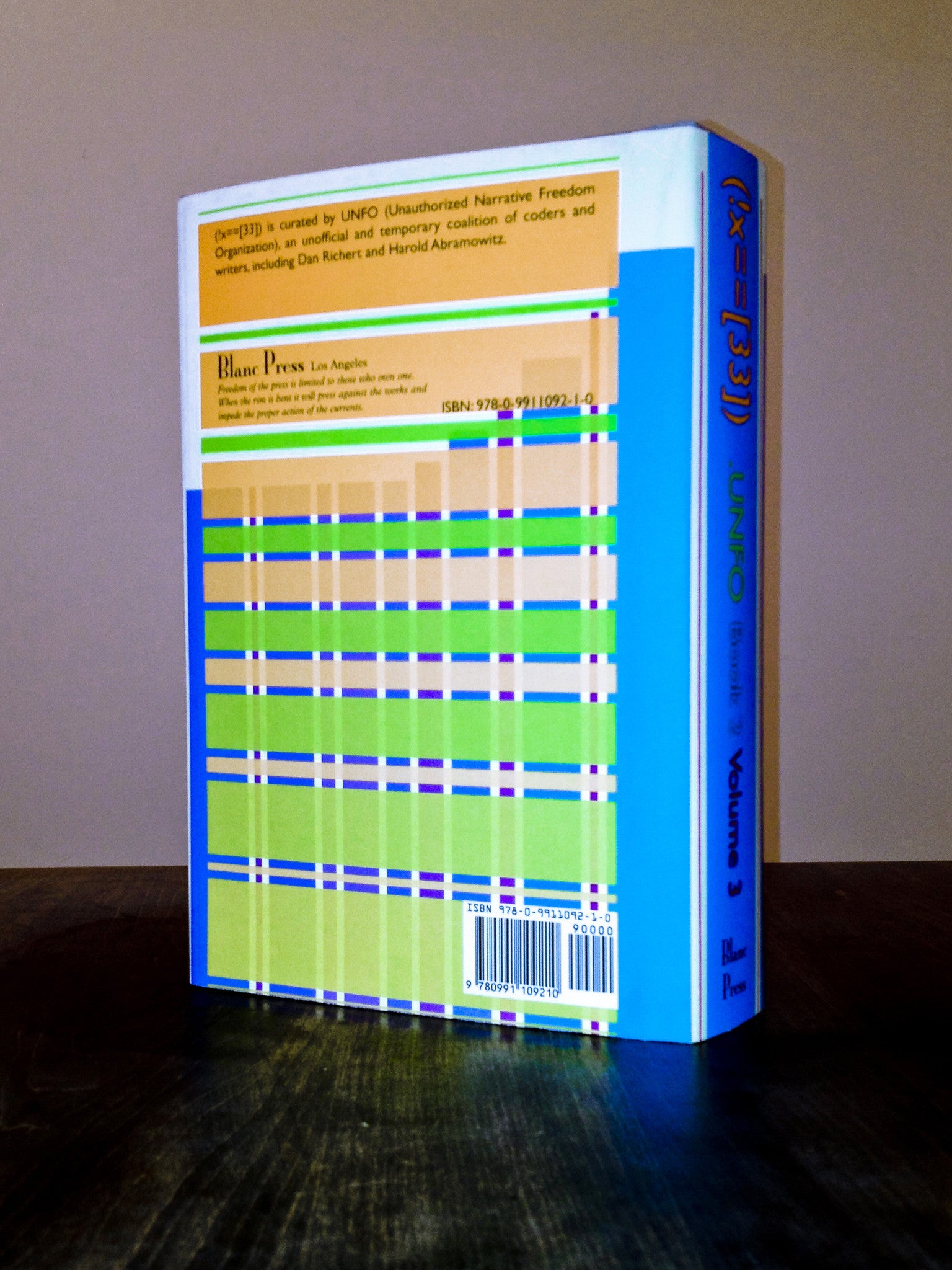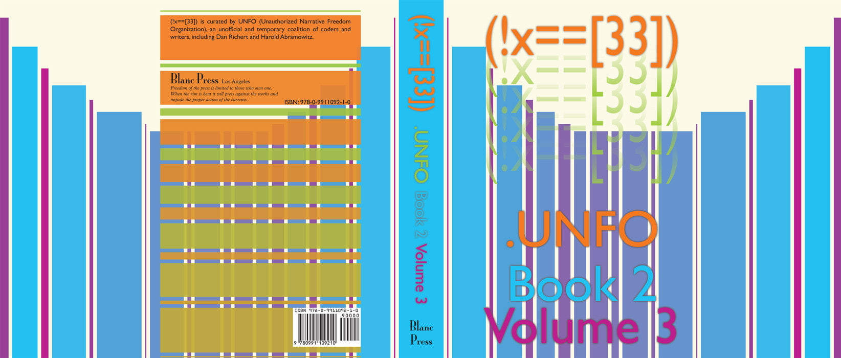 (!x==[33]) Book 2 Volume 3 by .UNFO is the last volume in a six-volume set of which only the first and last will be published. What if you had a very long book and made it longer? With (!x==[33]) .UNFO seeks to indexically lengthen the world’s most monumental texts through failed software operations.